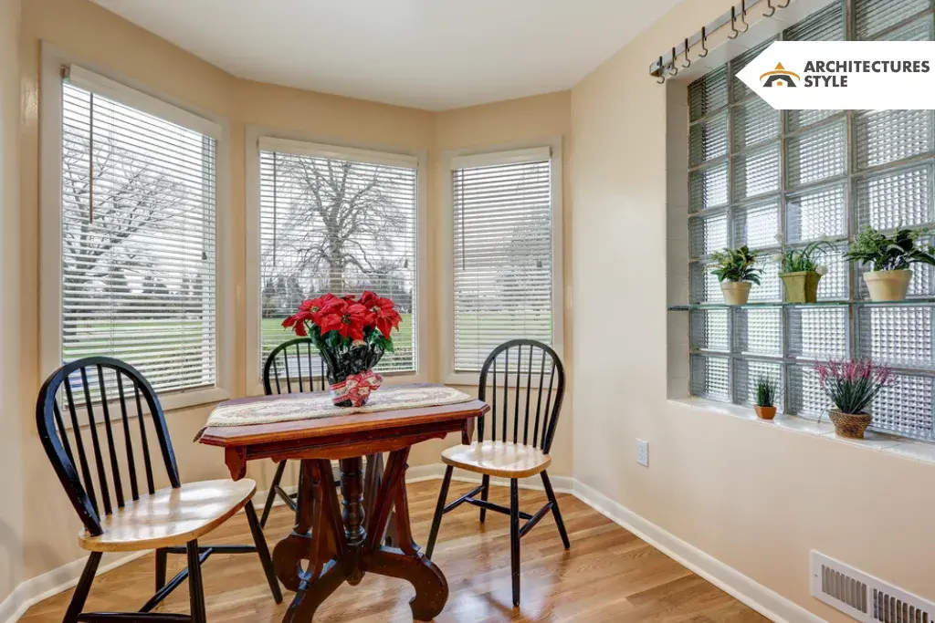 Bay window nooks are often designed or placed near a bay window to bring natural light into a room and to have a panoramic view while having breakfast or a quick meal.