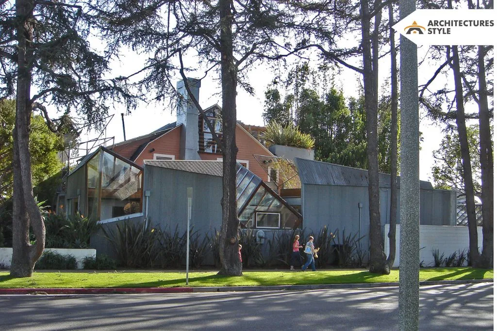 The Gehry house has the most unconventional materials. Architects beautifully create the overall look of the home by elements such as fences with trellis, glass inner wire, and wood framing at different levels. They also use raw materials like corrugated steel sheets and plywoods to support the whole structure.