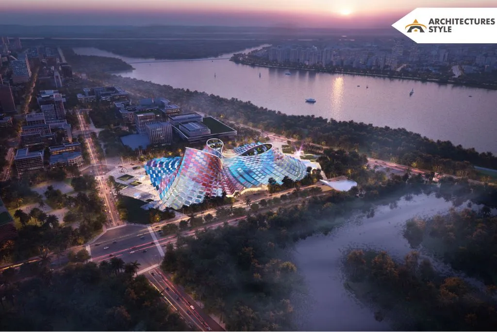 All set to be built in the city of Haikou on the island province of Hainan at the southernmost point of China, this structure will surely be a masterpiece in the entire country. It is a part of a large-scale master plan constructed to create a new cultural area in the Jiangdong district.
