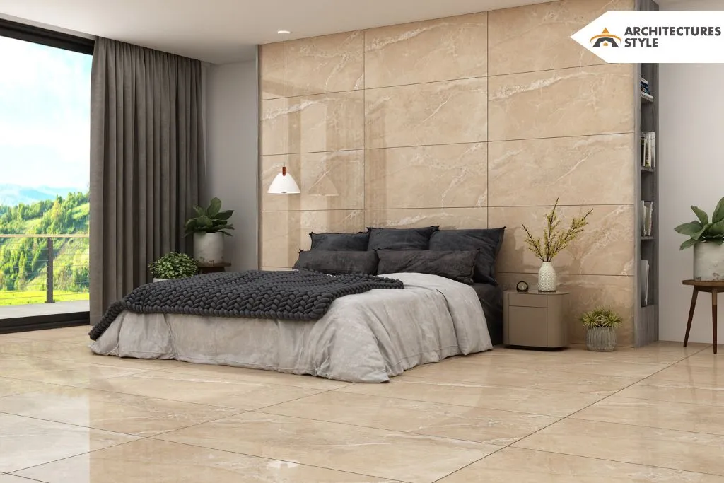 The marble-looking porcelain floor tiles provide the sophistication and elegance that is hard to achieve with any other effect. When it comes to its application, make your bedroom stand out by trying the darker shades like that of grey and slate.