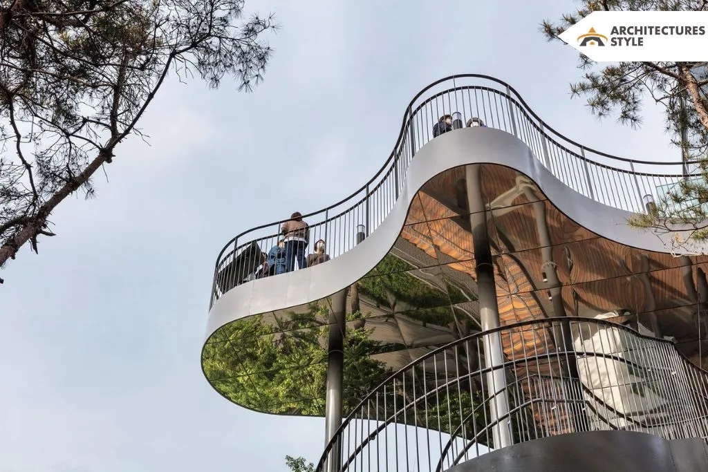 The Imagination circle Pavilion by UnSangDong Architects is a 140 m2 observatory that is a revamp of the existing one. This project was ideated to be an observatory that provided a sense of amusement and a scenic view of the surrounding naturistic backdrop. The ideology behind the design was to create a pavilion-like art piece that overlooks the entire cityscape, serving an aesthetic and functional role. Let’s see imagination circle.