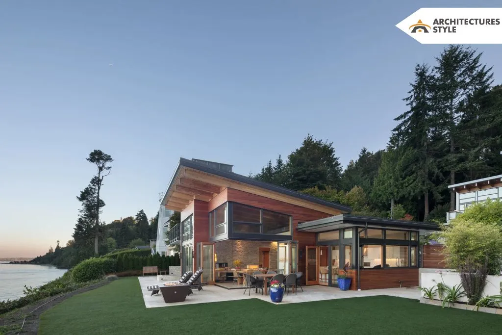 This is actually a steep-sloped site with a total area of around 2,800 square feet on which architects wanted to build an open-concept living space. This shoreline home features an open-concept living, dining, and kitchen area on the ground level. The kitchen can be directly opened to the outdoors with a corner bi-fold door system.