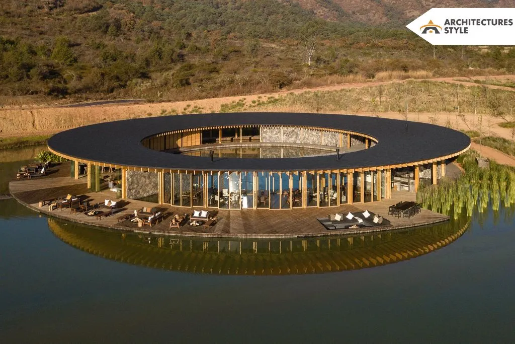 Built on an enormous land of 914-acre, Sordo Madaleno Arquitectos has created a clubhouse, open to nature completely. Situated in the outskirts of Valle de Bravo, it is seen as a socialization hub. This structure is a 19,374 square-foot circular space that floats on the lake close to the shore. It is held upon a framework of cross-laminated timber-based columns and beams intercepted with stone walls as the exterior wall. There is a pathway provided along the diameter that sinks to the level of the waterbody. It extends beyond the structure on the outside to a floating deck.