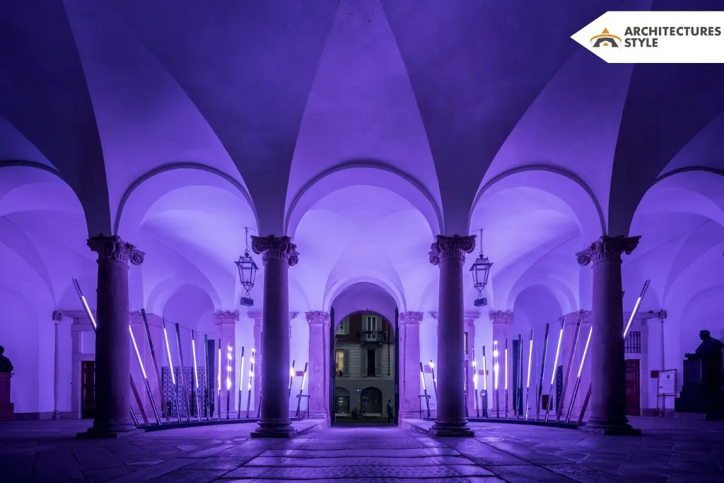 According to noa*The work produces an authentic and distinctive light and sound rhythm that enhances the emotional experience of guests. Each piece, which ranges in height from 2.5 to 4 meters and has a triangular cross-section of 7×7 sq. cm, was created by the architects. The South Tyrolean firm EWO’s technical expertise and knowledge allowed the notion of involvement to be translated into a working light and technology system. LED modules placed vertically and fitted with a unique anti-glare technology known as ewoLightTile lighten up the steel light beams.