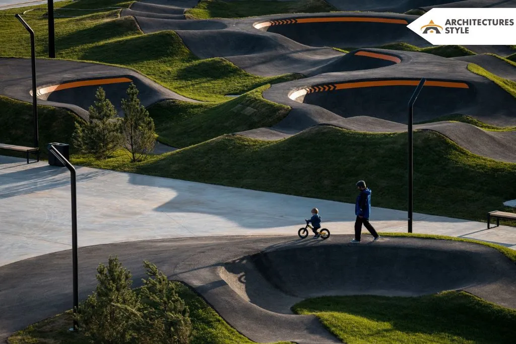 Architects have used traditional construction methods to build the skate park and both pump tracks. They were made manually because their forms are complex and unique.